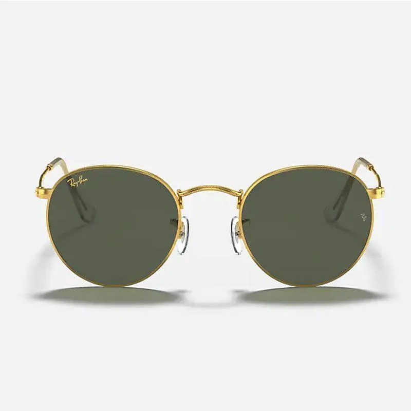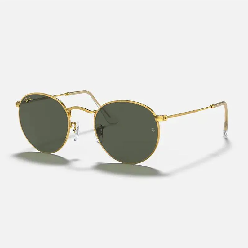 The Ray-Ban Round Metal sunglasses are totally retro. This look has been worn by legendary musicians and inspired by the 1960s counter-culture when this style first originated.The Ray-Ban unisex metal, iconic sunglasses are known for their defined round crystal lenses and distinct shape. A curved brow bar, adjustable nose pads, and thin metal temples with plastic end tips rest comfortably behind the ears. Available with Legend Gold lens logo, straight from the archive.