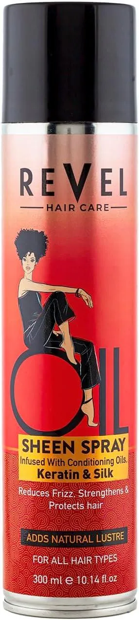 Introducing Keratin Oil Sheen Spray Condition, the ultimate solution for maintaining and enhancing the beauty of your hair. Whether you have coils, curls, waves, or straight tresses, this versatile spray is designed to cater to your specific needs, keeping your hair soft, lustrous, and well-conditioned. Our special formula is enriched with keratin oil, known for its nourishing and strengthening properties. It helps to repair and protect your hair from damage, leaving it healthier and more resilient. Whether you're aiming for cutting-edge looks or classic styles, this sheen spray is your go-to product for achieving the perfect finish. For those with straight hair, this sheen spray provides a lustrous shine while keeping your strands soft and manageable. It helps to control frizz, minimize flyways, and add a healthy glow to your locks. Experience the transformation as your hair becomes silky-smooth and radiant. For those with curls or textured hair, this sheen spray is a game-changer. It enhances the natural shine of your curls, defines their shape, and reduces frizz, leaving you with well-defined and vibrant curls. Embrace your natural texture and enjoy the confidence of beautifully conditioned hair. To use, simply spray the product onto your hair, focusing on the mid-lengths to ends. You can apply it to damp or dry hair, depending on your styling preference. Style as desired, and revel in the benefits of soft, shiny, and nourished hair. The 300ml size ensures you have an ample supply of this amazing sheen spray for multiple uses, making it a long-lasting addition to your hair care routine. Experience the benefits of Revel Keratin Oil Sheen Spray Condition and unleash the potential of your hair.