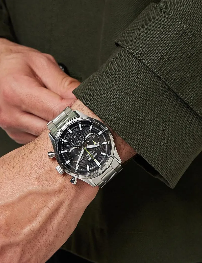 Seiko Men's Analog Quartz Watch with Stainless Steel Strap SSB413P1, Black