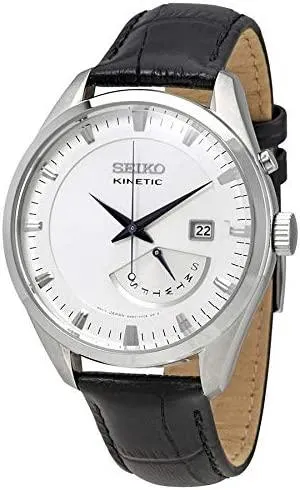 Seiko Men's Kinetic SRN071 Silver Leather Quartz Fashion Watch
