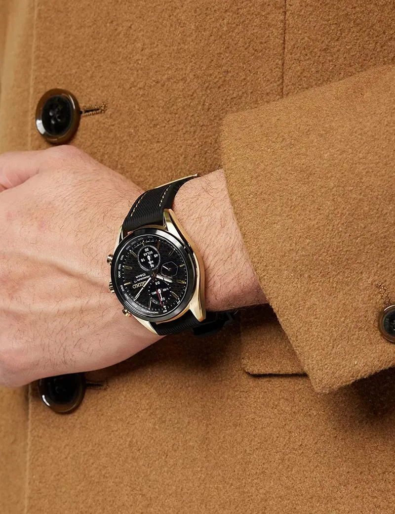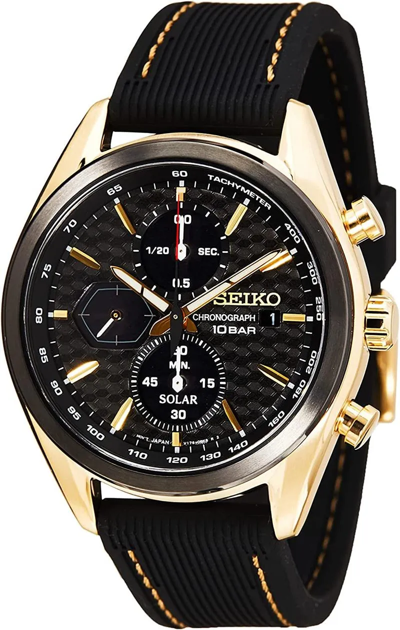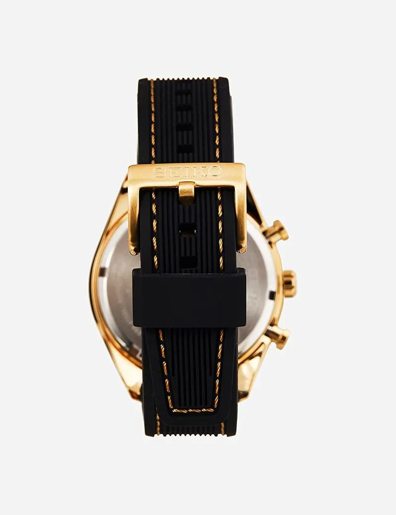 Seiko Men's Quartz Watch Stainless Steel with Silicone Strap, black-gold, Chronograph