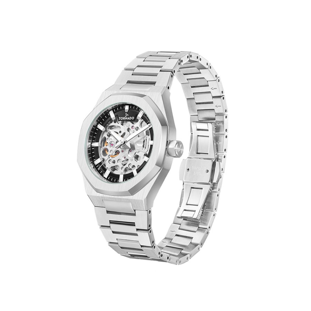 Tornado Autonova Automatic Watch T24303 SBSB combines a black dial with precise automatic movement. Its clear markers and hands allow easy reading of time. Suitable for daily wear, this watch fits casual and professional styles, providing dependable, self-winding timekeeping without extra complications.