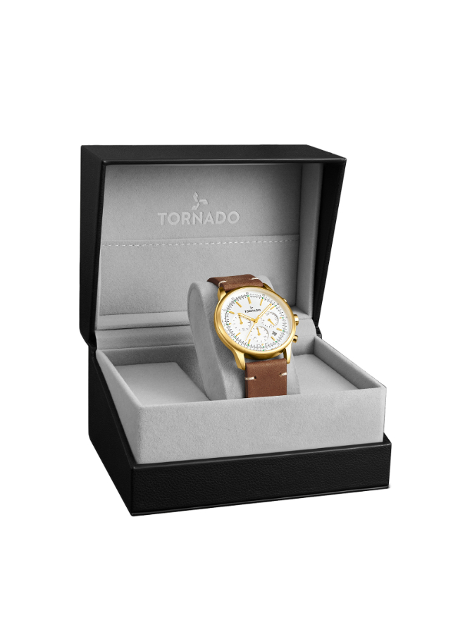 The Tornado Classic T24108 GLDW features a silver dial with multi-function display, offering practical time and date tracking options.