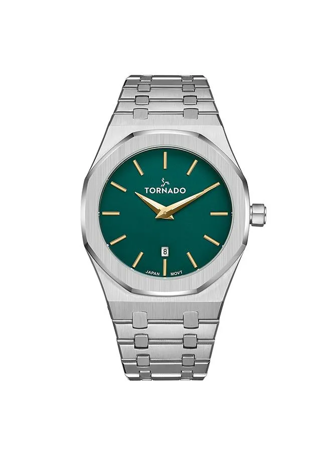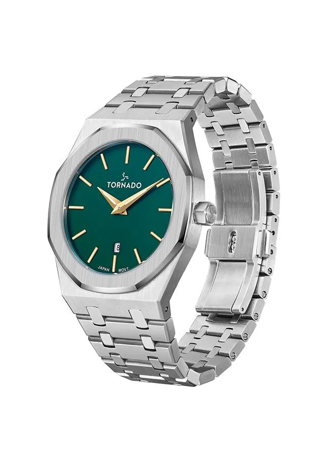 Octagonal Stainless Steel, Brushed and Polished Silver case with Analog display, Green With Gold Markings