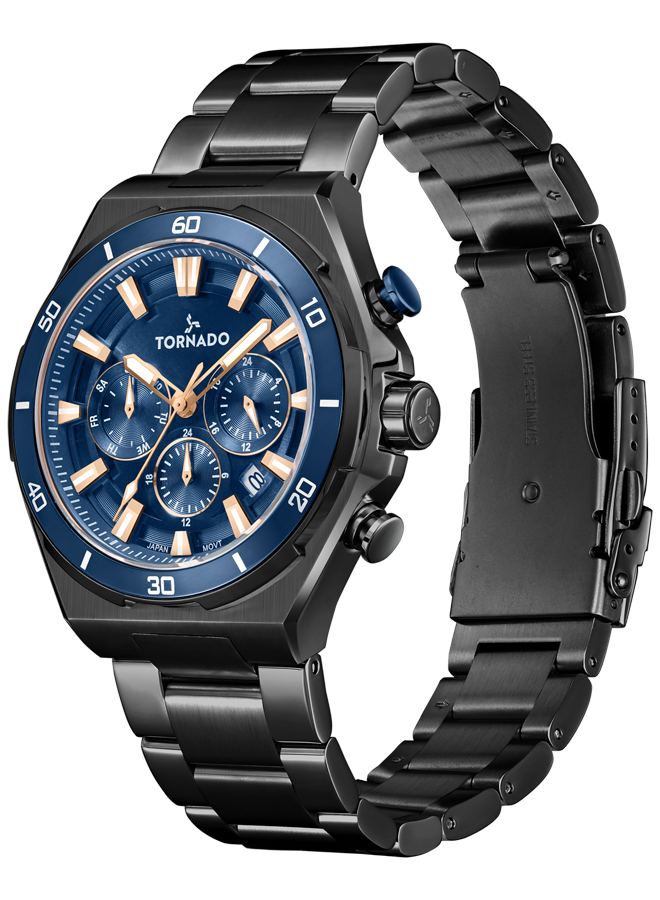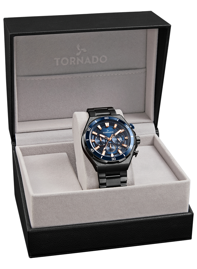 Tornado Stellar X Multi-Function Watch T24104 BBBN combines a blue dial with multiple sub-dials for added functionality. The clear markers and hands provide easy time reading, along with features like date and chronograph. Suitable for daily wear, it offers dependable and versatile timekeeping for various occasions.