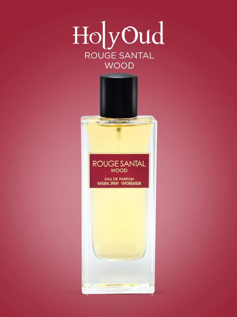 Holy Oud Rouge Santal Wood Eau de parfum is a woody fragrance for Men. The start notes are Saffron, Lime & Bergamot. The heart notes are Sandalwood, Guaiac Wood & White Musk. The endnotes are Madagascar Vanilla, Texas Cedar & Papyrus.