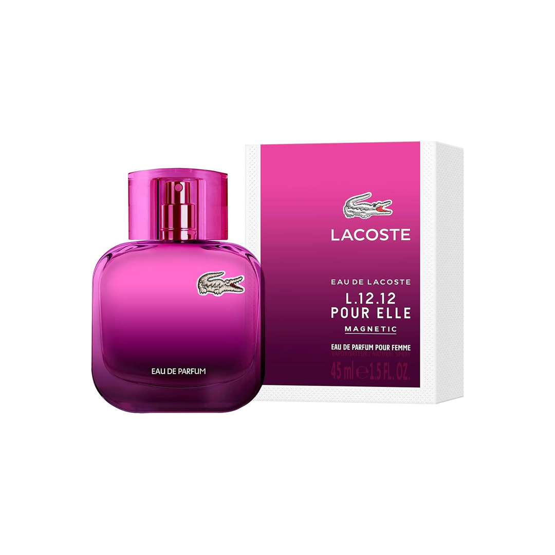 Lacoste Eau De Lacoste L.12.12 Magnetic Perfume by Lacoste, With its intoxicating blend of sweetness and spice, Lacoste Eau De Lacoste L.12.12 Magnetic pairs well with a day out shopping or an evening pampering yourself. It immediately strikes you with its tropical top notes of mango, orange, and clementine. The floral heart is made up of heliotrope, jasmine, violet leaf, and the faintest hint of rose. The base is resplendent with the sweetness of vanilla and the spice of Tonka bean and patchouli. It smells almost good enough to eat and lasts for the whole evening.