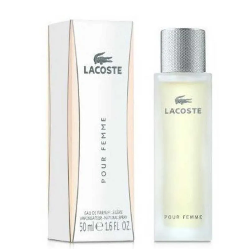 Lacoste Pour Femme Perfume by Lacoste, This elegant fragrance for women is both sporty and smooth . It starts off with an intriguing blend of top notes that include apple, freesia, and pepper. Its heart is a feminine combination of rose, heliotrope, jasmine, violet, and hibiscus. The earthy, woody base of this unique perfume is formed by notes of suede, sandalwood, cedar, incense, and labdanum. It has moderate sillage and moderate to high longevity, making it a great choice for when you need a fragrance that will stay with you all day. This strong but pleasant scent is versatile and easy to wear. It will pair equally well with a feminine dress, a sporty outfit, or your favorite jeans.
